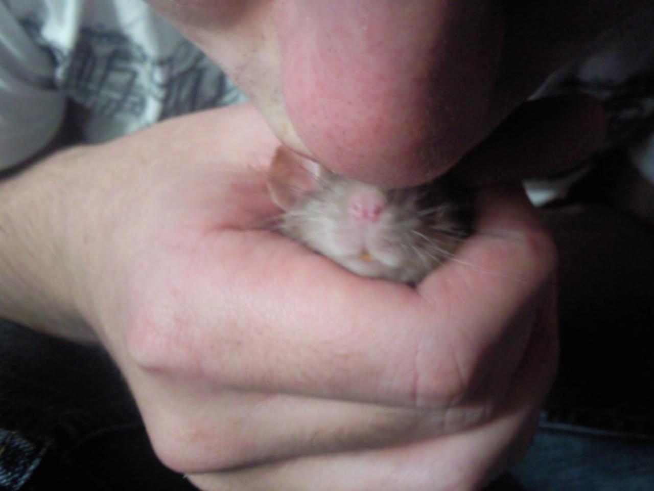 Sincèrement, c'est une puce extra, elle fait des bisoux partout, tous le temps, à n'importe qui. Elle n'a peur de rien (vraiment de rien), c'est une force à elle même, dans le groupe elle est d'ailleurs l'une des dominantes sans pour autant être méchante, si vous ne suivez pas mes rats pendant plusieurs jours vous ne pourriez pas le savoir je pence, la domination passe beaucoup par le jeux avec elle. Cette puce est une perle, elle est "appars" mais c'est son caractère qui fait que j'ai l'impression de la comprendre (non je ne suis pas folle ^^')